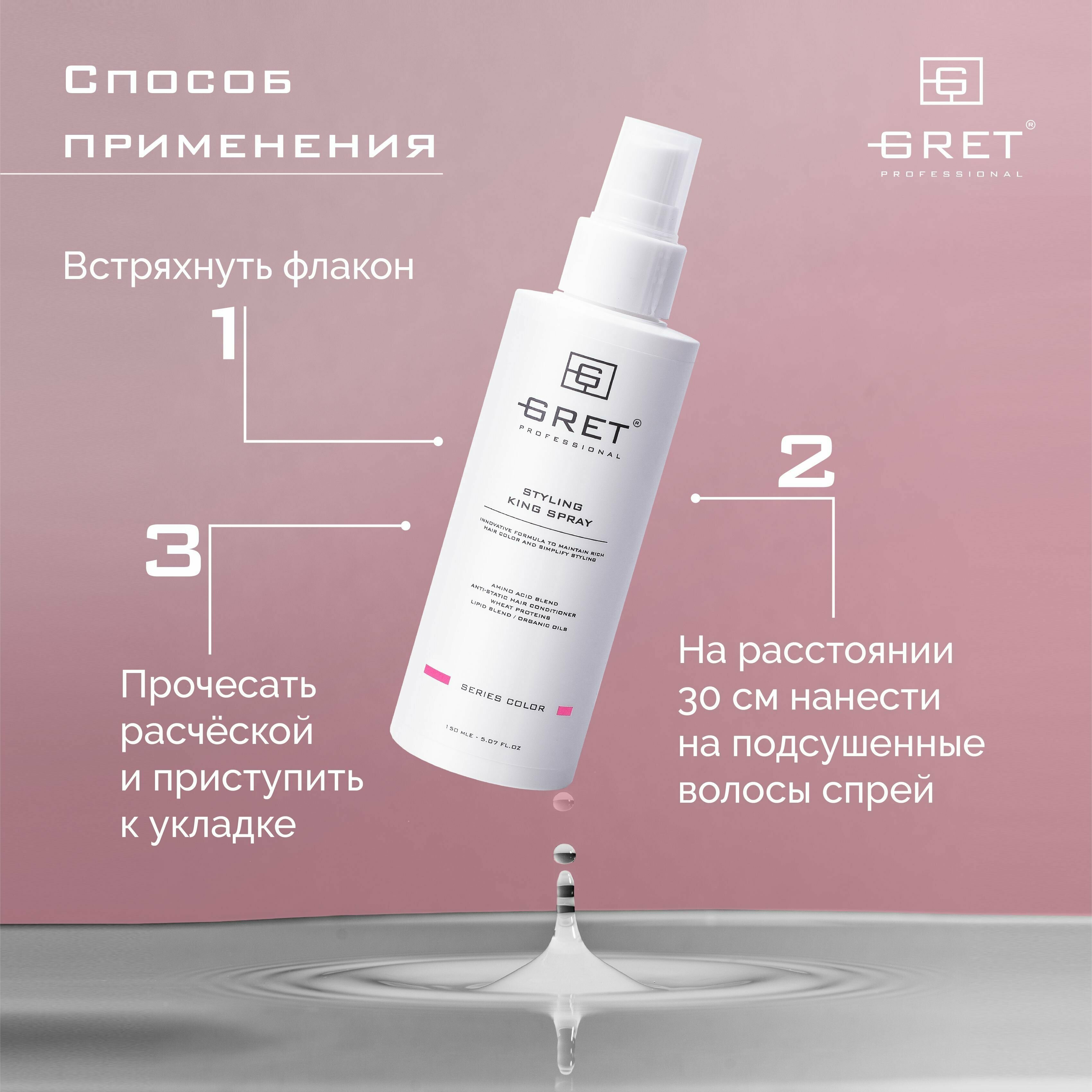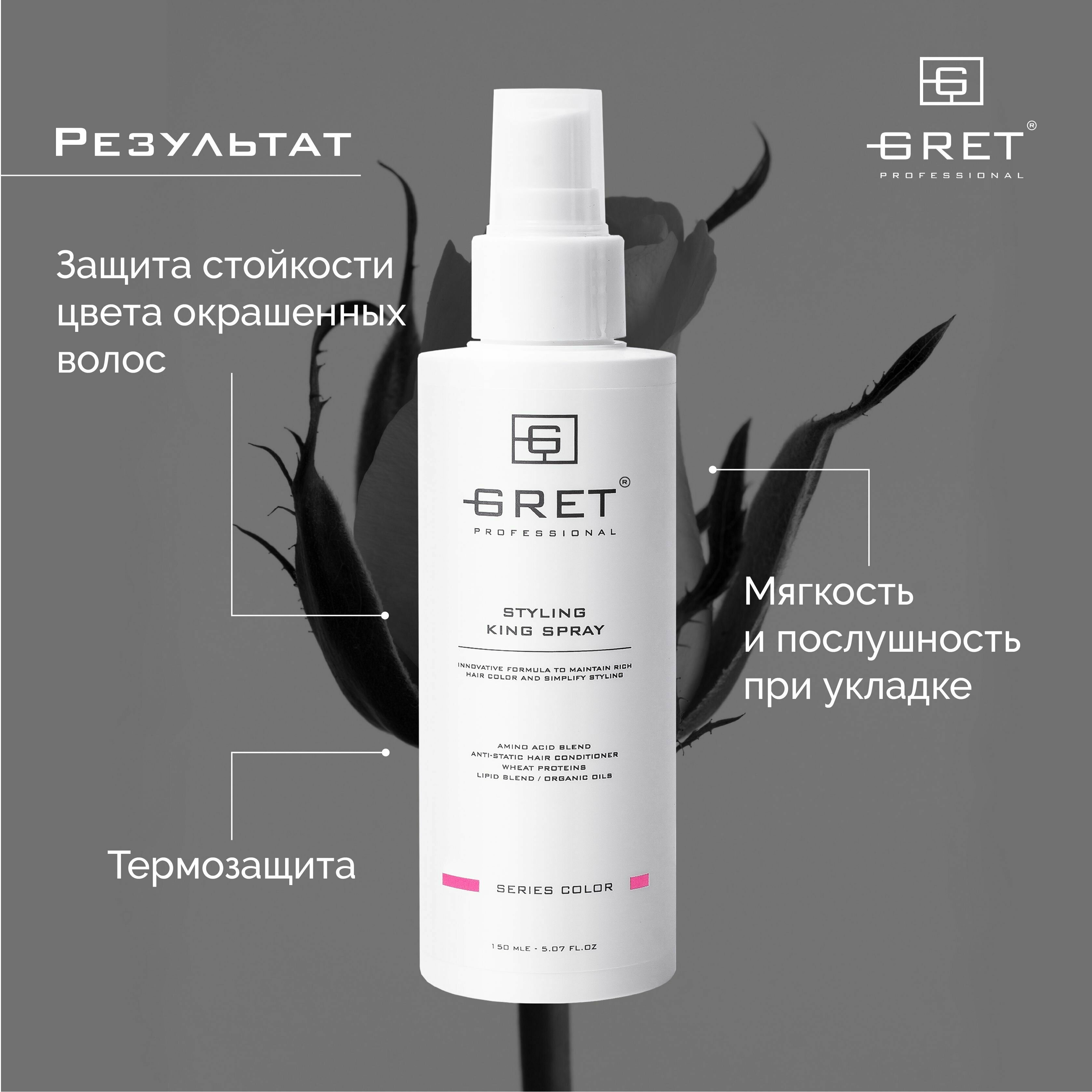 Купить GRET KING SPRAY спрей для волос термозащита окрашенных всех типов волос многофункциональный профессиональный женский