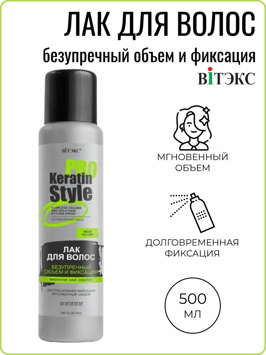 Купить Витэкс KERATIN PRO Style Лак для волос 500мл безупречный объем И фиксация экстрасильная фиксация (запаска)