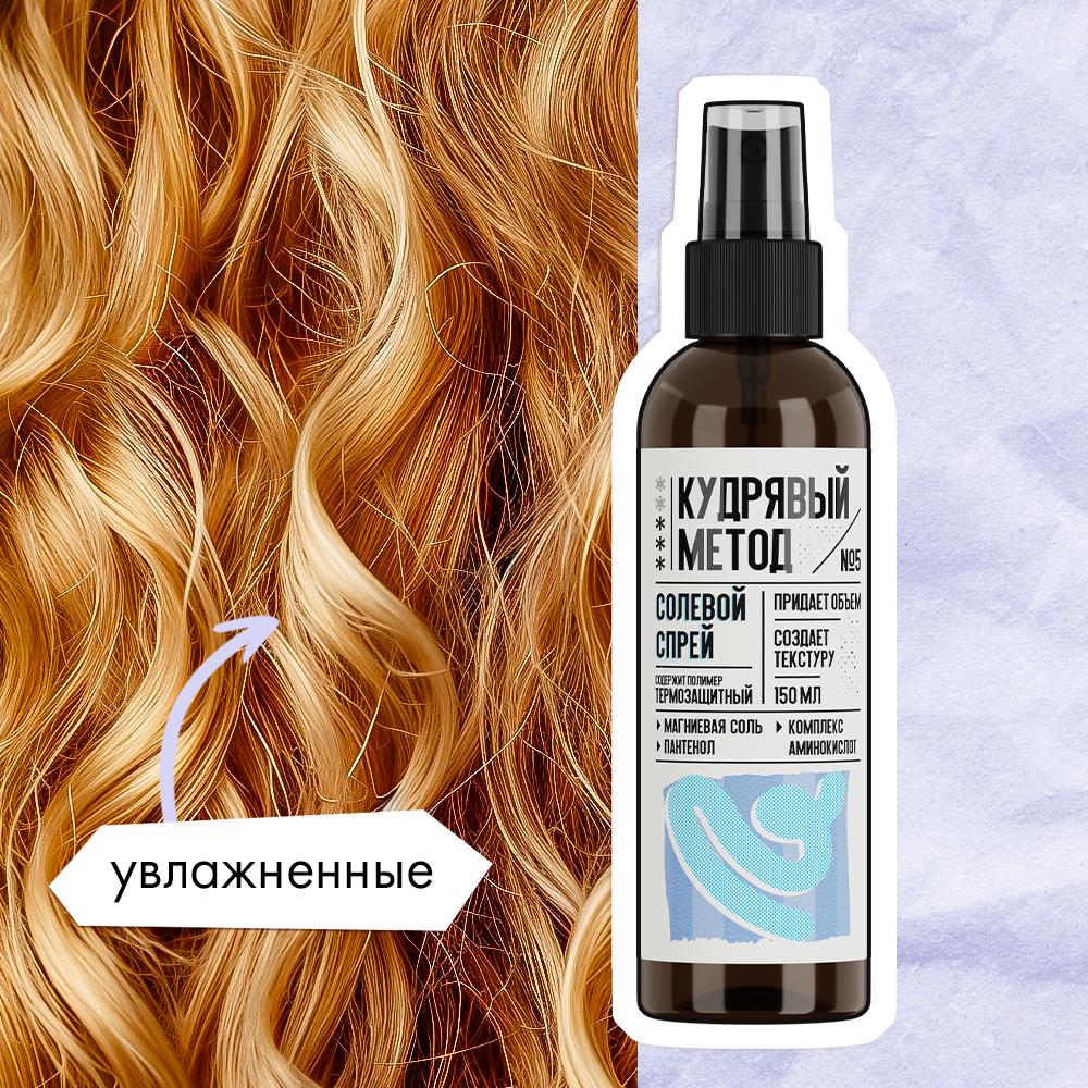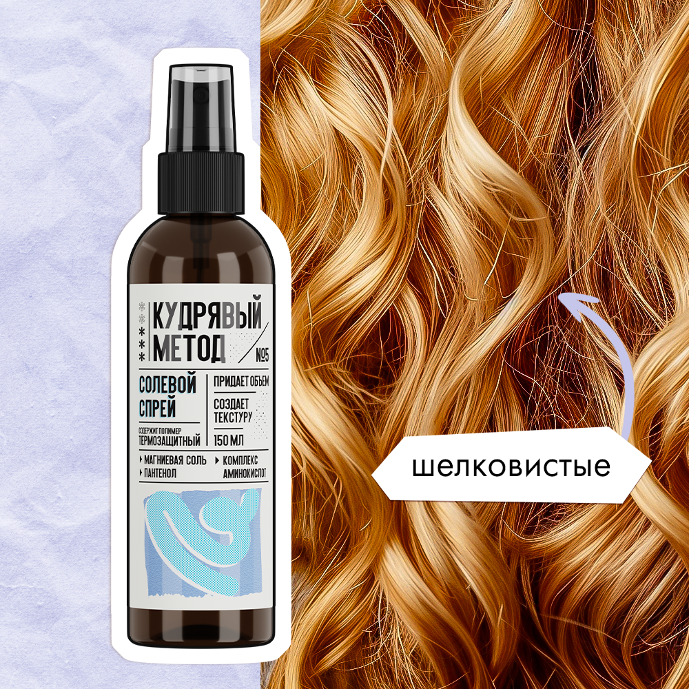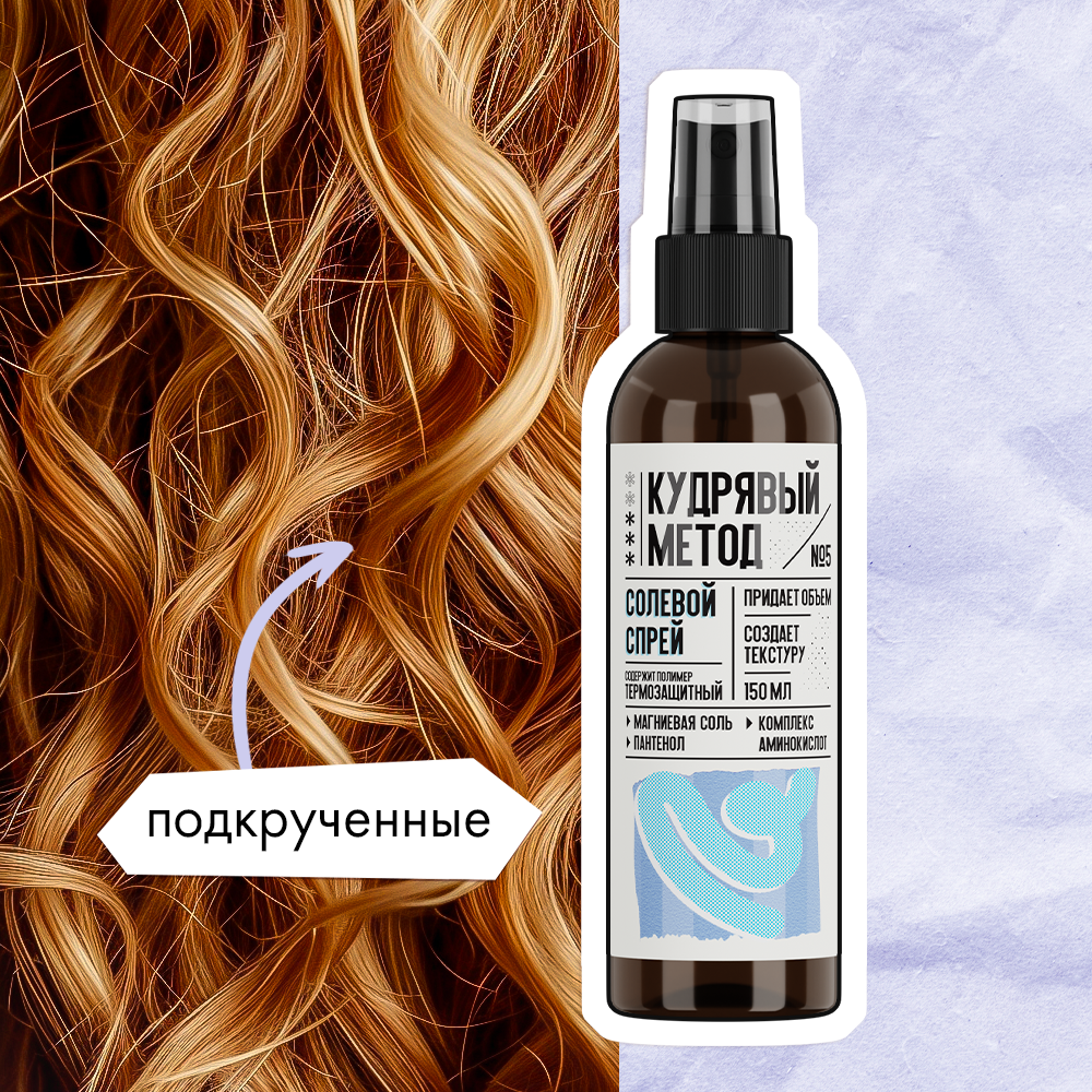 Кудрявый метод Текстурирующий спрей для укладки кудрявых волос солевой, стайлинг, рефреш, термозащита локонов, 150 мл интересное: