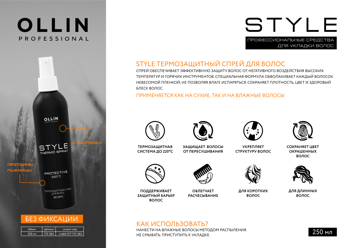 Ollin, Термозащитный спрей для волос New, 250 мл