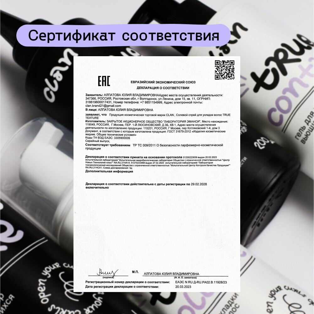 CLAN Текстурирующий солевой спрей для укладки волос для объема интересное: