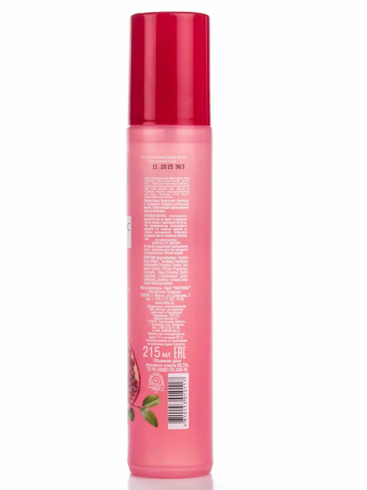 Витэкс сочный гранат Лак для волос Объем и сила Экстрасильной фиксации, 215 мл с распылителем