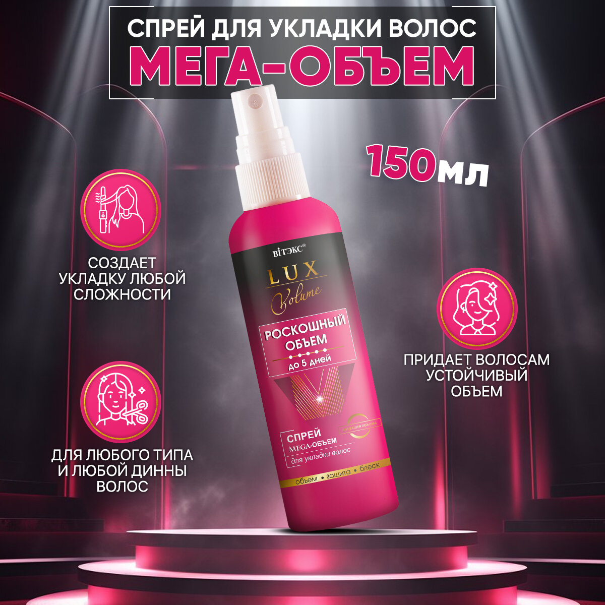Витэкс LUX VOLUME роскошный объем Спрей Mega-Объем до 5 дней для укладки волос, 145 мл, 6 шт/