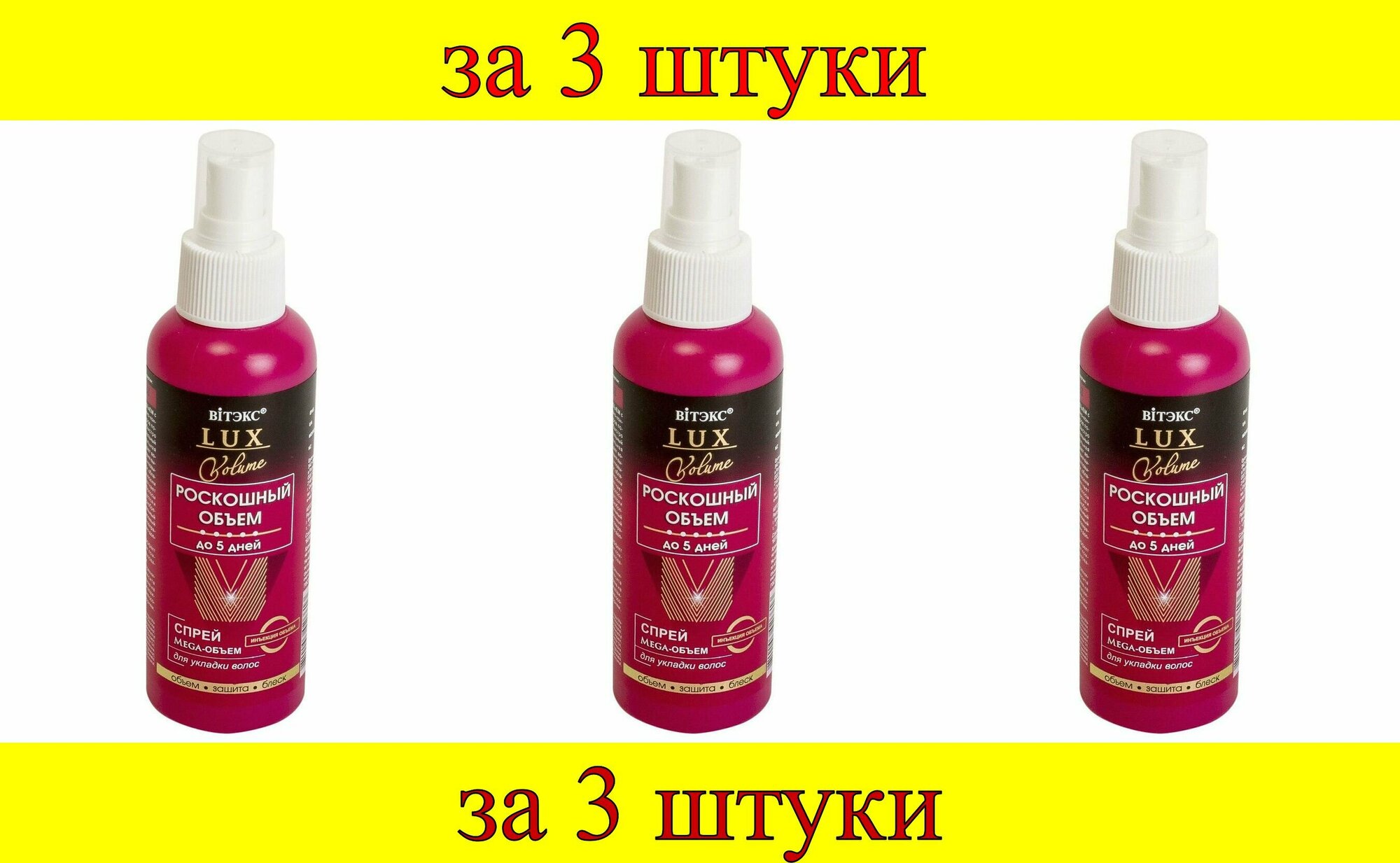 Витэкс LUX VOLUME роскошный объем Спрей Mega-Объем до 5 дней для укладки волос, 145 мл, 3 шт/ интересное: