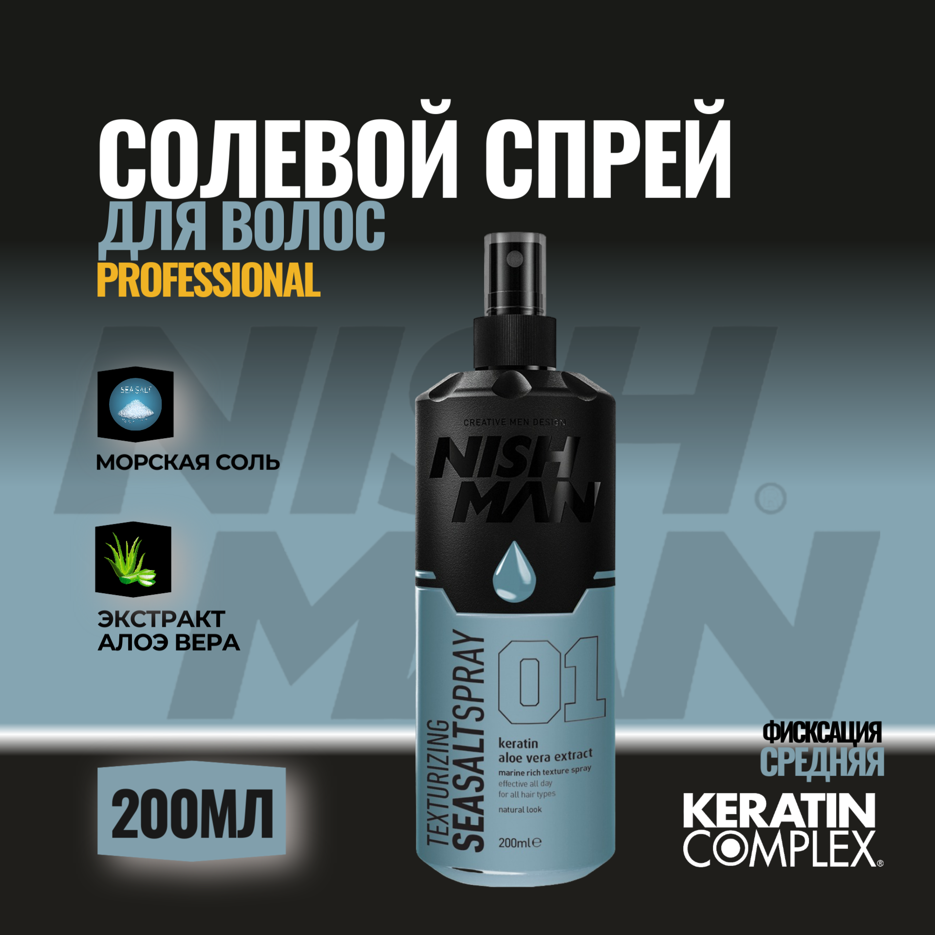 Солевой спрей для укладки волос NISHMAN SEASALT SPRAY (матовый, придает объем, четко выраженные пряди), 200 мл интересное: