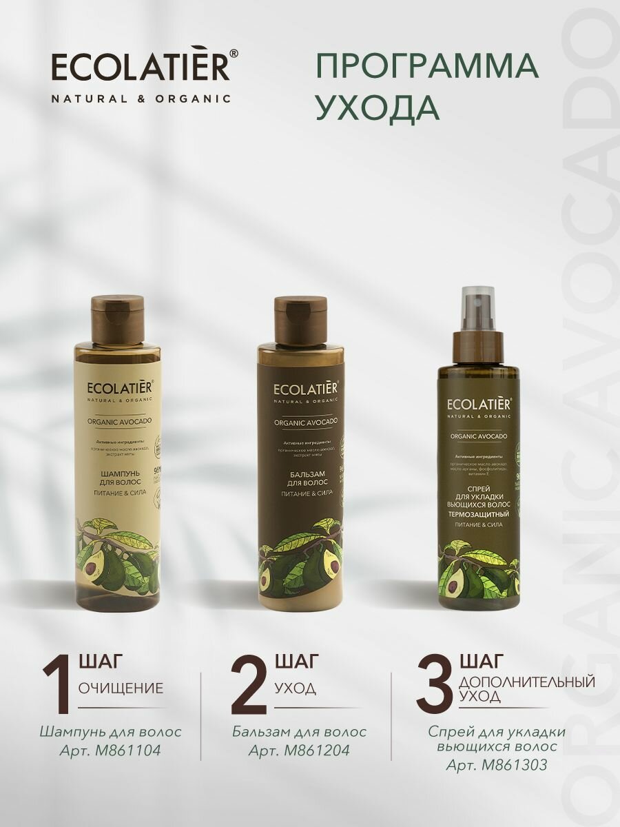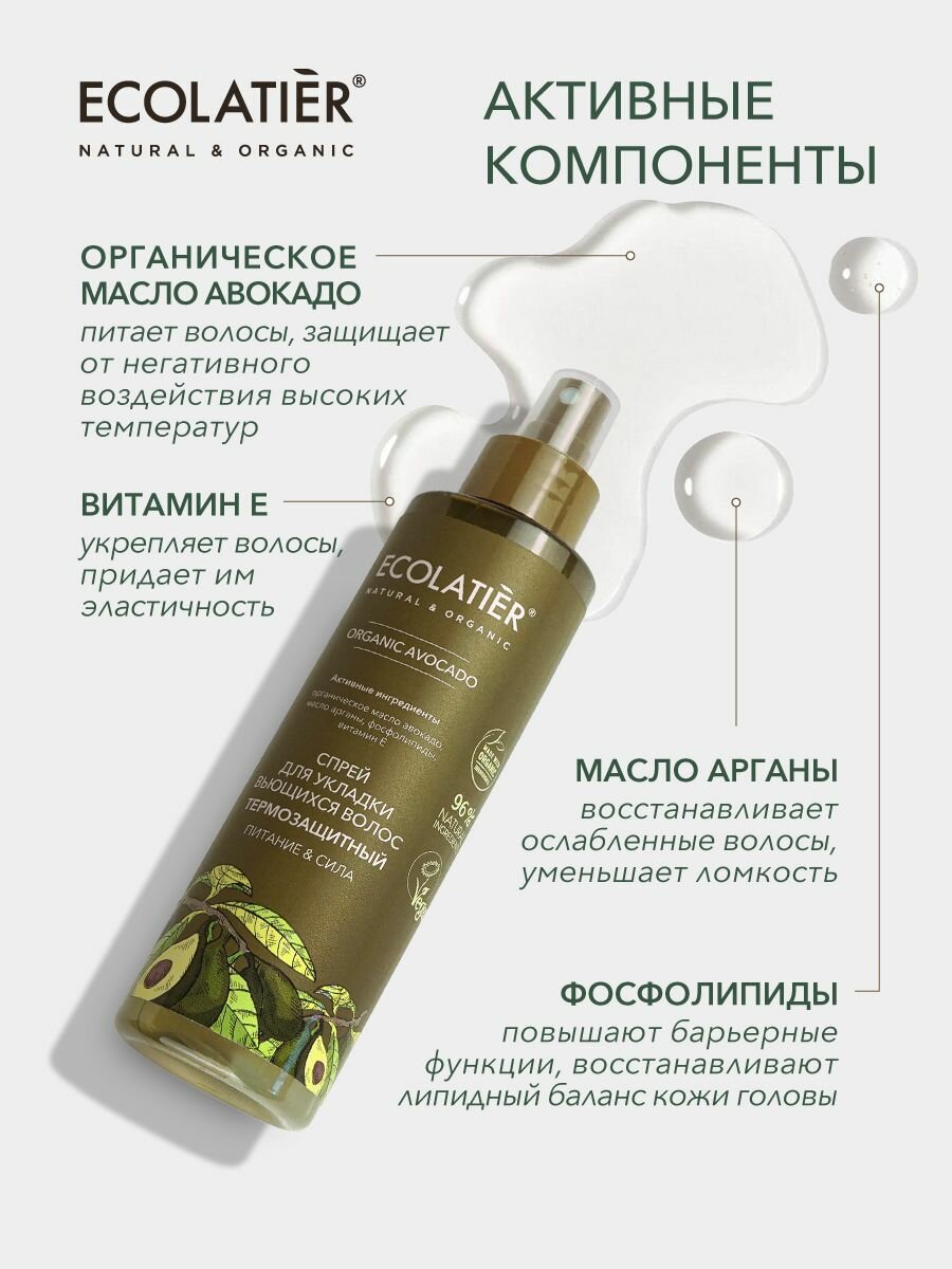Спрей для укладки волос термозащитный Авокадо Ecolatier Green 200 мл интересное: