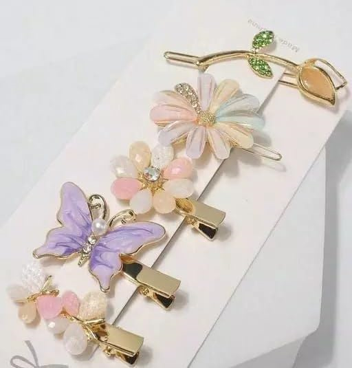 Купить Заколки детские с цветами и бабочкой, набор 5 штук
