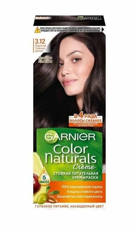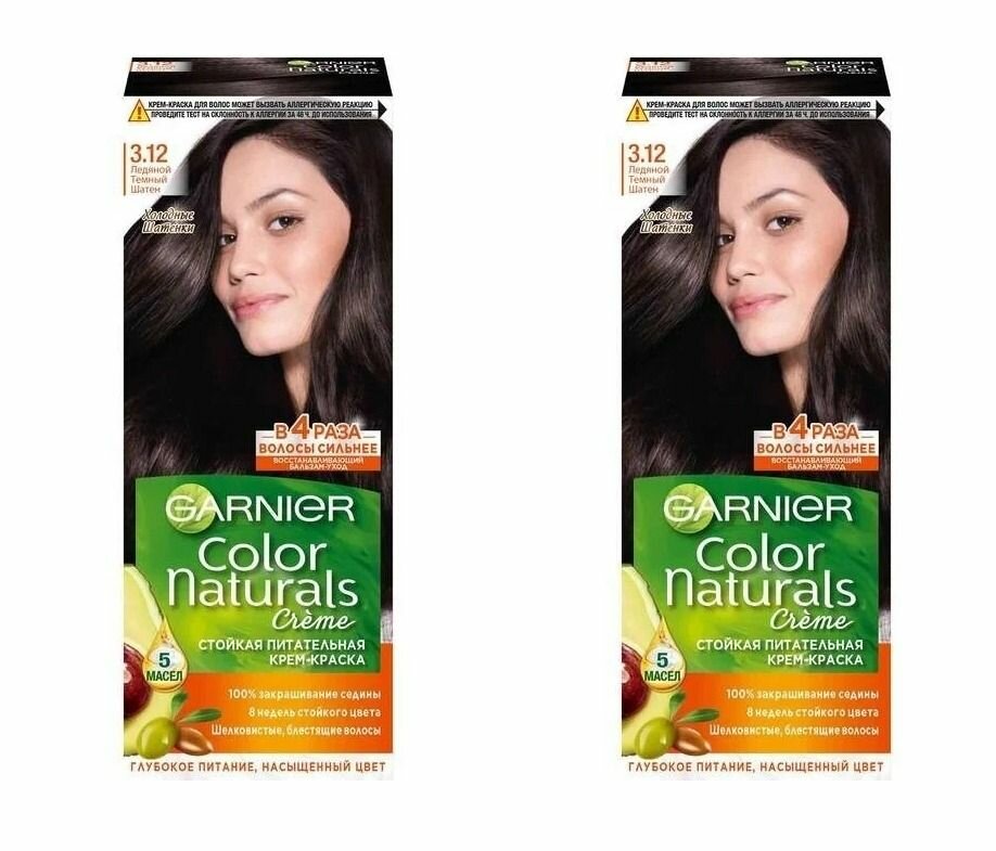 GARNIER Крем-краска для волос Color Naturals, стойкая питательная, 3.12, Ледяной темный шатен, 110 мл - 2 штуки