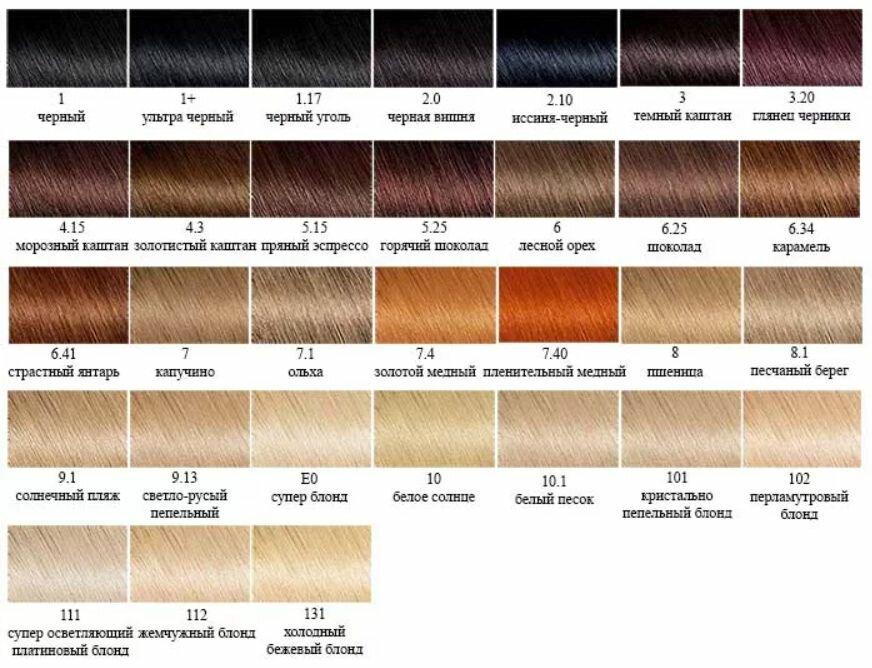 | Цвет товара | 1+ ультра черный, 10 белое солнце, 10.1 белый песок, 1000 Кристальный ультраблонд, 111 платиновый блонд, 112 жемчужный блонд, 113 песочный блонд, 2.0 элегантный черный, 2.10 иссиня черный, 2.6 красная ночь, 3 темный каштан, 3.12 ледяной темный шатен, 3.23 темный шоколад, 3.3 благородный темно-каштановый, 3.61 сочная ежевика, 4.00 глубокий темно-каштановый, 4.1/2 горький шоколад, 4.15 морозный каштан, 4.23 холодный трюфельный каштановый, 4.3 золотистый каштан, 5.00 глубокий каштановый, 5.1/2 мокко, 5.12 Ледяной светлый шатен, 5.15 пряный эспрессо, 5.23 пряный каштан, 5.25, Горячий шоколад, 6.00 глубокий светло-каштановый, 6.23 перламутровый миндаль, 6.25 шоколад, 6.34 карамель, 6.41 страстный янтарь, 7 капучино, 7.00 глубокий русый, 7.1 ольха, 7.132 натуральный русый, 7.132, Натуральный русый, 7.4 золотистый медный, 7.40 пленительный медный, 8 пшеница, 8.00 Глубокий Светло-Русый, 8.1 песчаный берег, 8.132 натуральный светлый русый, 9.1 солнечный пляж, 9.132 натуральный блонд, коричневый |