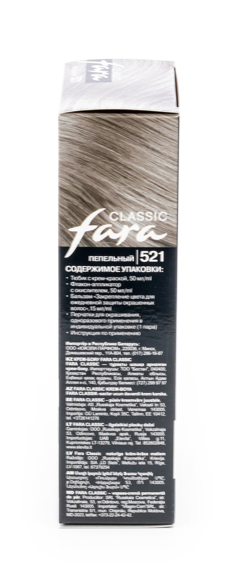 Fara Classic Стойкая крем-краска для волос, 521, пепельный набор 2шт.