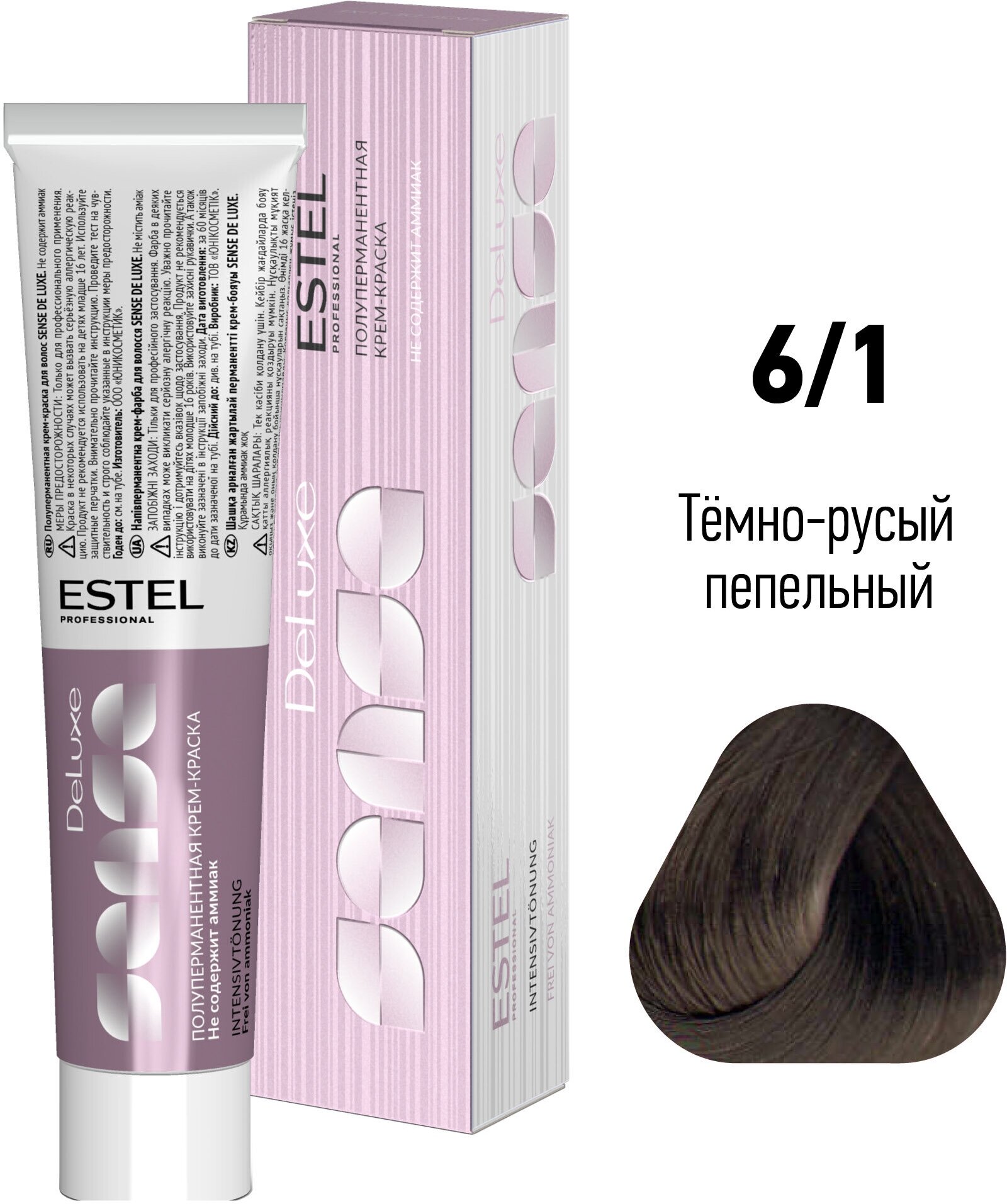 Купить ESTEL Sense De Luxe полуперманентная крем-краска для волос, 6/1 темно-русый пепельный, 60 мл