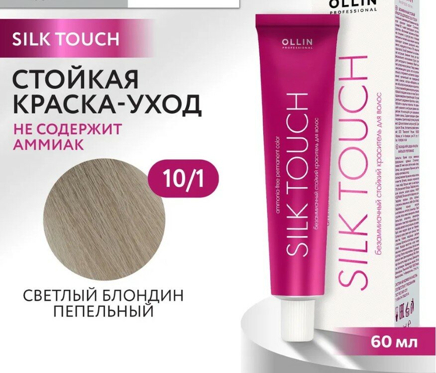 Купить OLLIN Professional Silk Touch стойкий краситель для волос безаммиачный, 10/1 светлый блондин пепельный, 60 мл