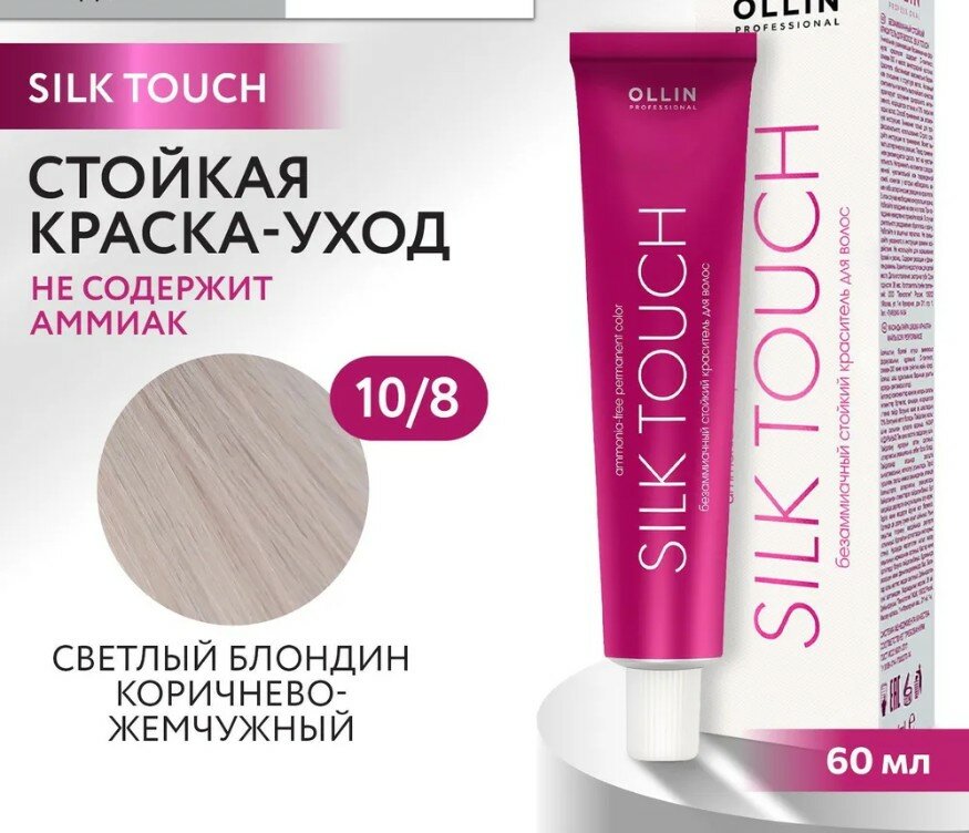 Купить OLLIN Professional Silk Touch стойкий краситель для волос безаммиачный, 10/8 светлый блондин жемчужный, 60 мл