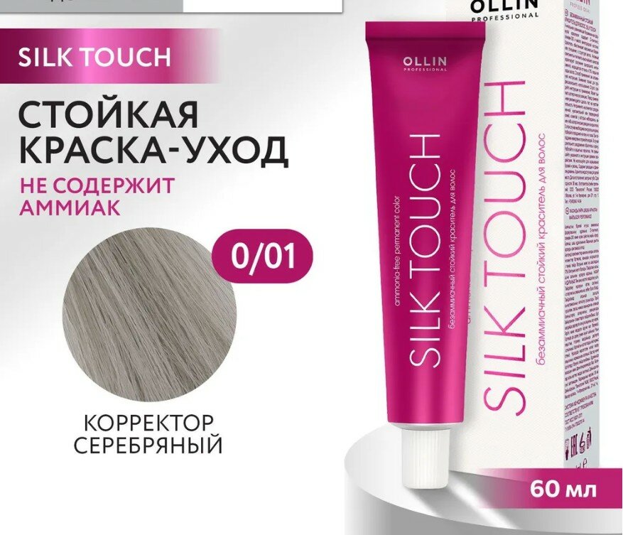 Купить OLLIN PROFESSIONAL Ollin Silk Touch Безаммиачный стойкий краситель для волос 60 мл, 0/01 SILK TOUCH корректор серебряный 60 мл