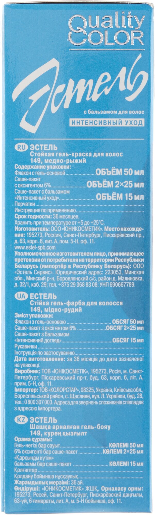 ESTEL Quality Color стойкая гель-краска для волос, 149 медно-рыжий, 50 мл