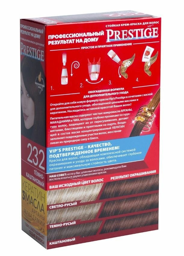 Купить VIP's Prestige Бриллиантовый блеск стойкая крем-краска для волос, 232 темно-каштановый