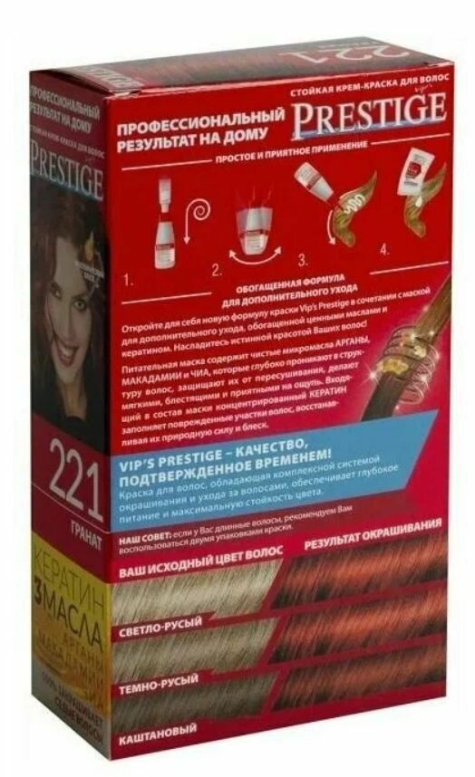 Купить VIP's Prestige Бриллиантовый блеск стойкая крем-краска для волос, 221 - гранат