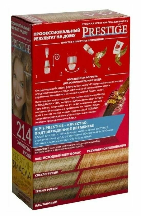 Купить VIP's Prestige Бриллиантовый блеск стойкая крем-краска для волос, 214 - золотисто-русый