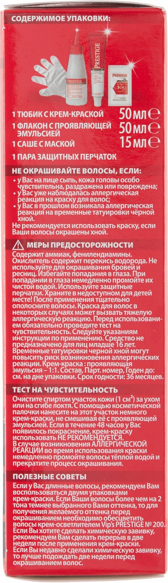 | Дополнительная информация | крем-краска - 50 мл, проявляющая эмульсия - 50 мл, маска - 15 мл |