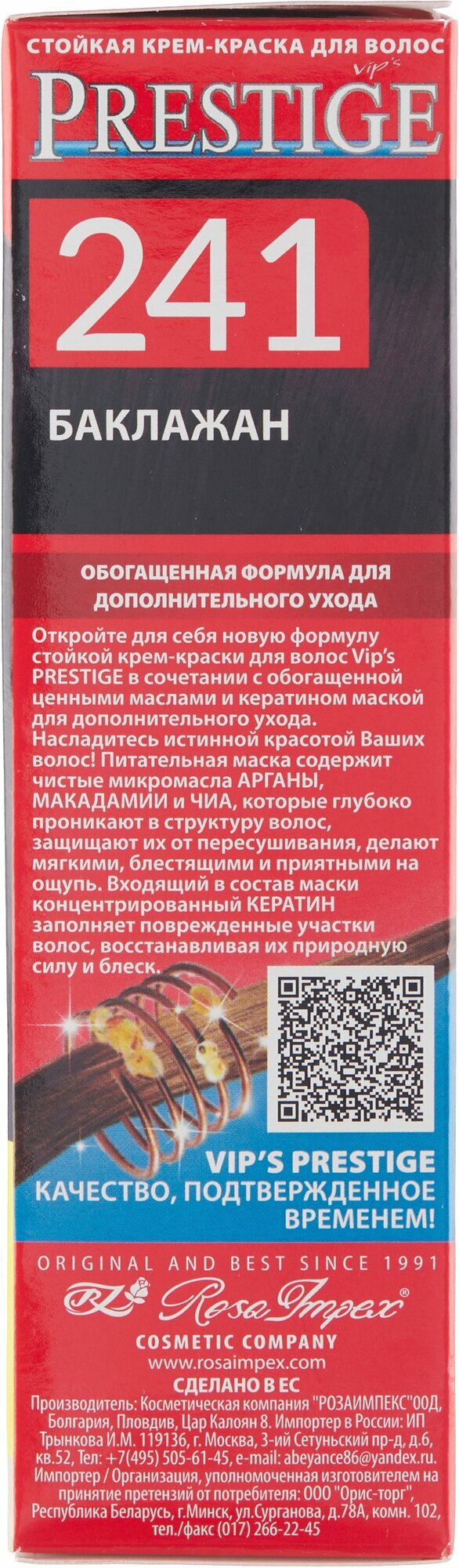 VIP's Prestige Бриллиантовый блеск стойкая крем-краска для волос, 241 - баклажан
