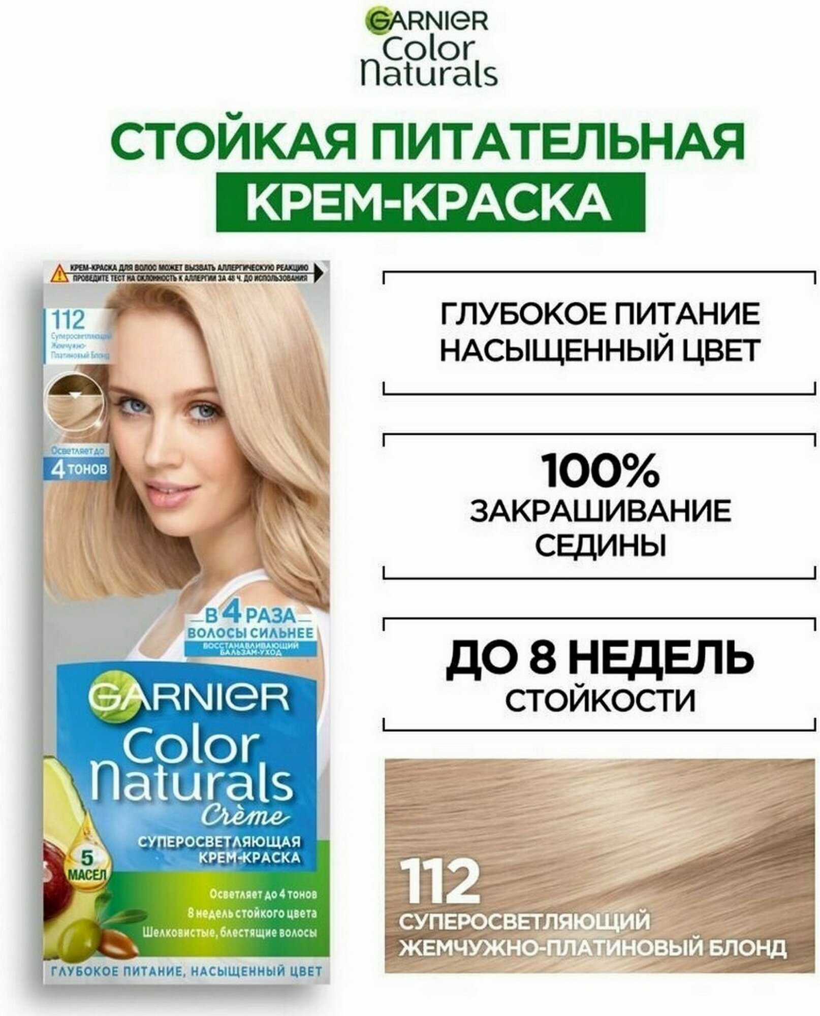 Купить GARNIER Color Naturals стойкая питательная крем-краска 5 масел, 112 суперосветляющий жемчужно-платиновый блонд, 110 мл - 1 шт