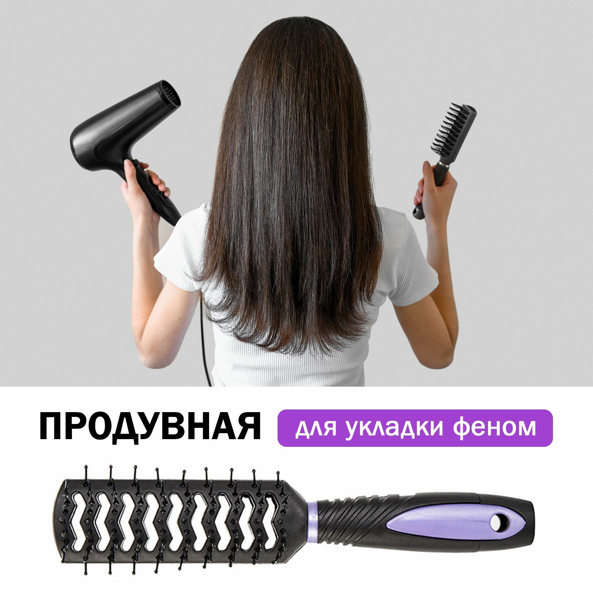 Купить Набор расчесок для волос Пурпурный: массажная распутывающая, брашинг, гребень, вентилируемая для укладки феном, зеркало