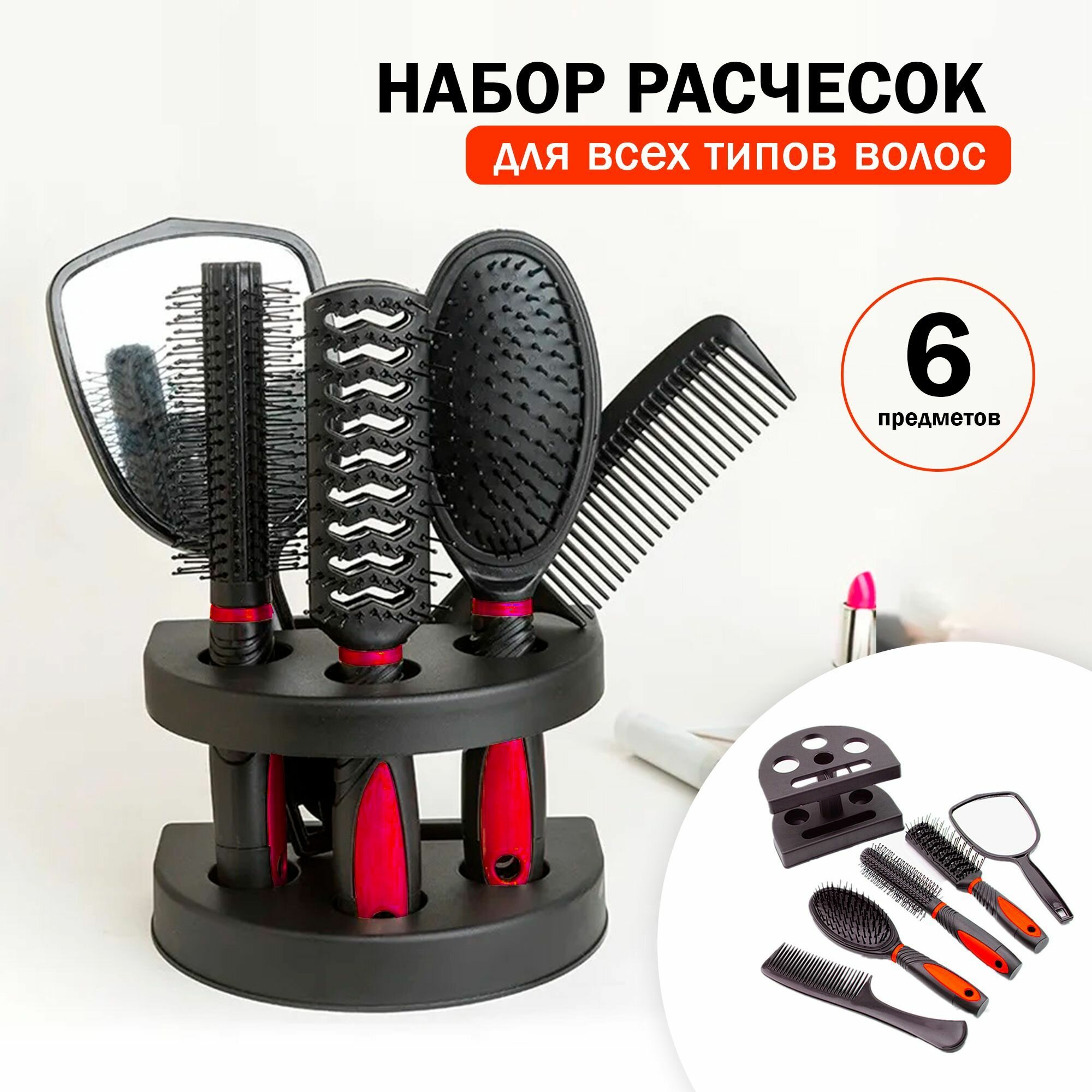 Купить Набор расчесок для волос Красный: массажная распутывающая, брашинг, гребень, вентилируемая для укладки феном, зеркало
