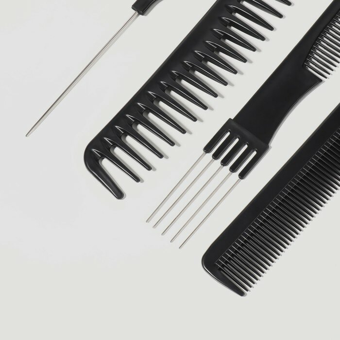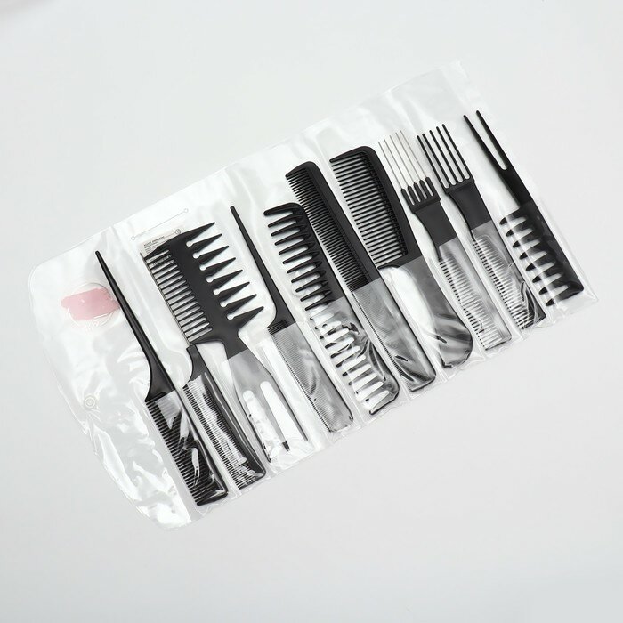 Купить Набор расчёсок, 10 предметов, в чехле, цвет чёрный
