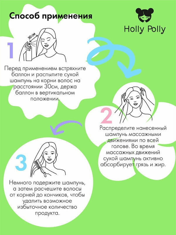 | Способ применения | перед применением встряхните баллон. Распылите сухой шампунь на корни волос с расстояния 30 см, держа баллон вертикально. Распределите шампунь массажными движениями по всей голове. Немного подождите, а затем расчешите волосы от корней до кончиков, чтобы удалить избыточное количество продукта |