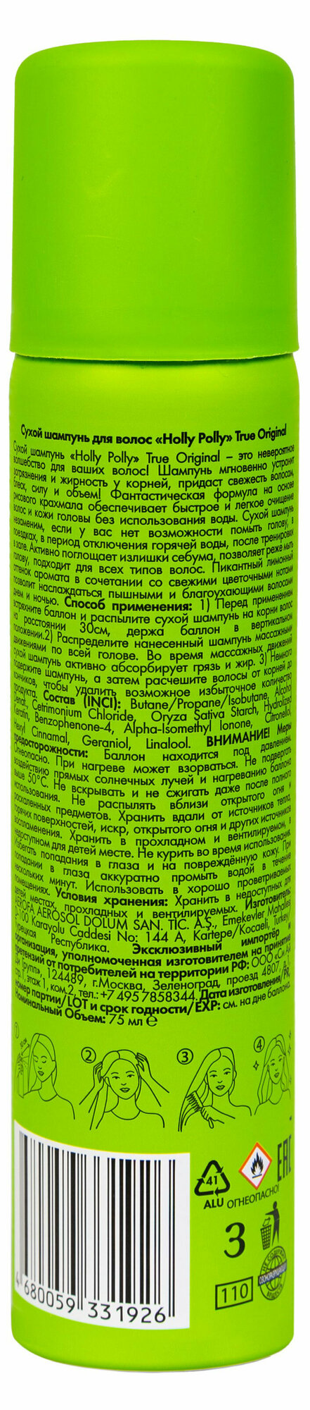 Сухой шампунь HOLLY POLLY для всех типов волос True Original, 75 мл интересное:
