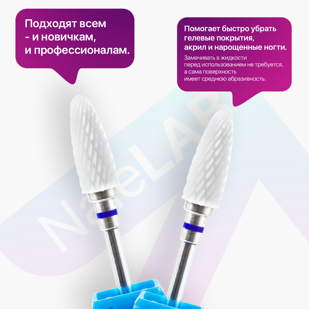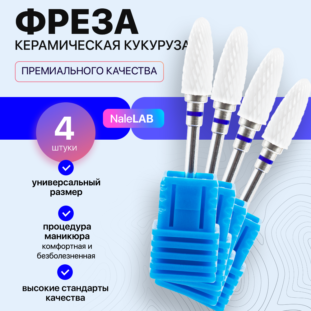 Набор керамических фрез для снятия маникюра и педикюра, NaleLAB "Кукуруза", 4 шт, синий интересное: