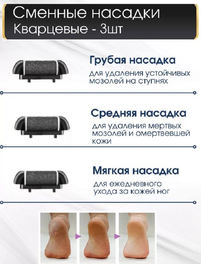 Электрическая пилка для пяток с дисплеем и подсветкой. Набор сменных насадок для роликовой пилки светлые 3 шт.