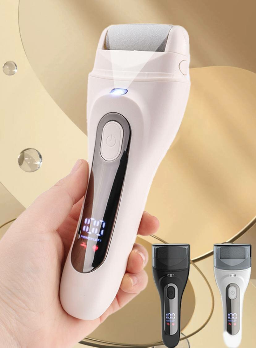 Электрическая пилка для пяток с дисплеем и подсветкой. Набор сменных насадок для роликовой пилки светлые 3 шт.