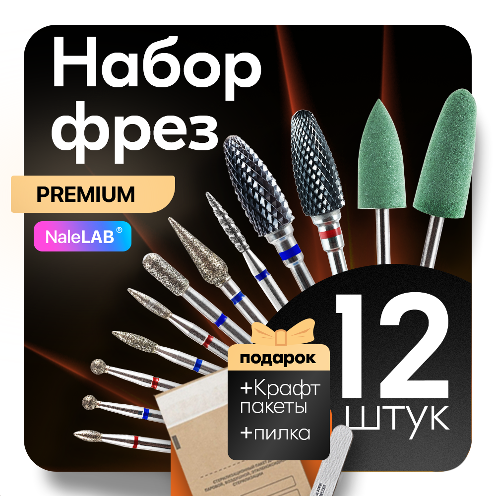 Набор фрез для маникюра и педикюра,NaleLAB, алмазные-твердосплавные,12 шт интересное: