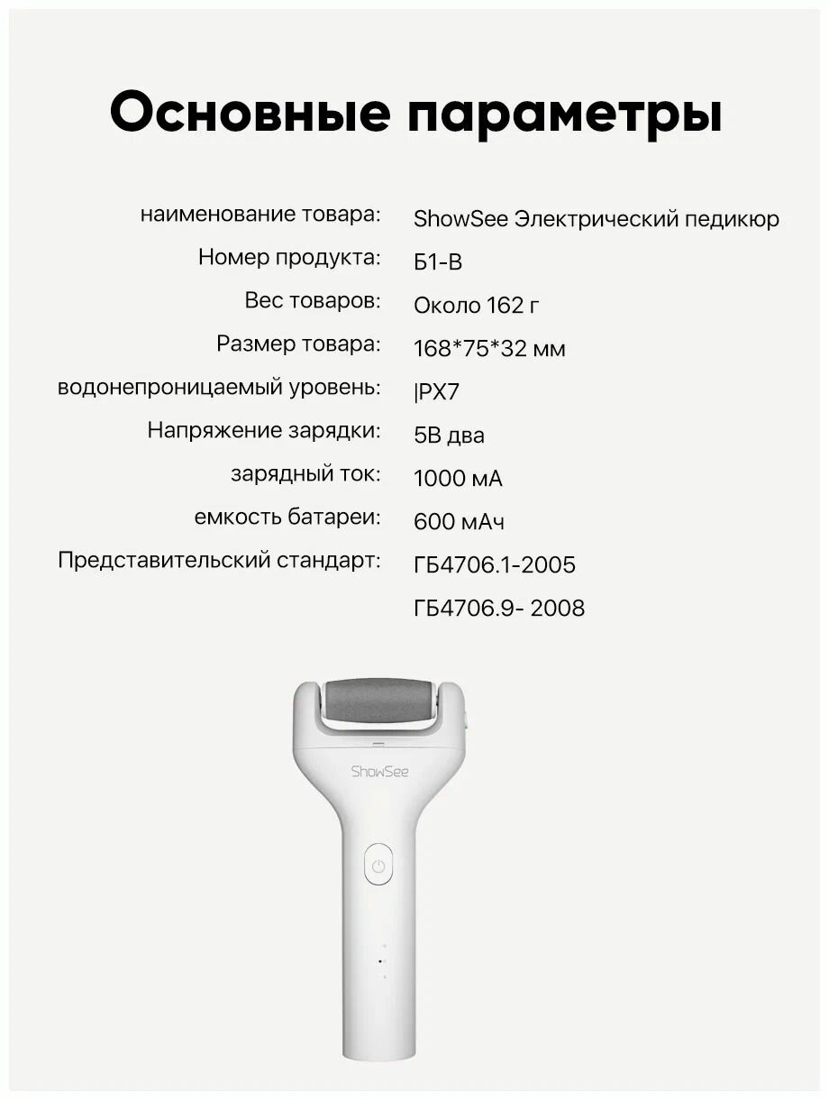 Роликовая пилка для педикюра ShowSee Electric Pedicure B1-W (White) интересное: