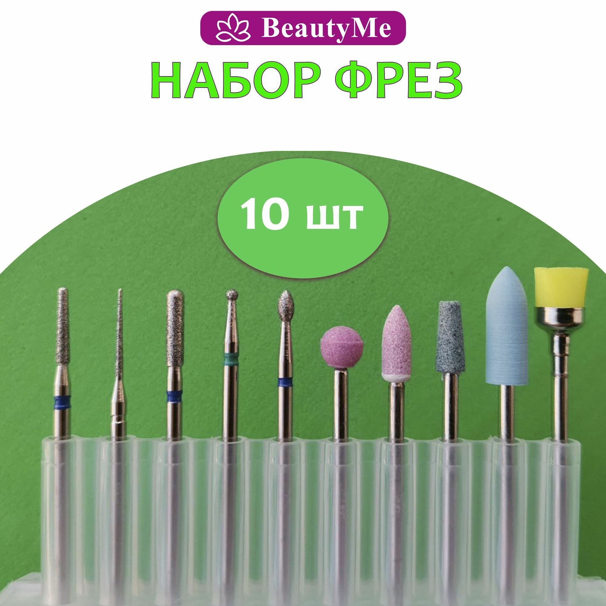Купить Набор алмазных фрез для аппаратного маникюра и педикюра (шар, игла, полировщик, пламя, корундовые фрезы))
