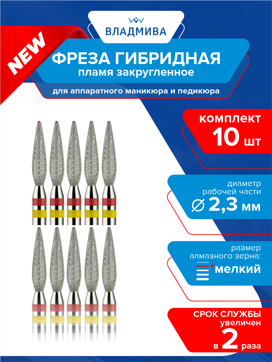 Фреза гибридная пламя закругленное, мелкой зерн. 2,3 мм. 10 шт. (856.104.244.100.023КG) интересное: