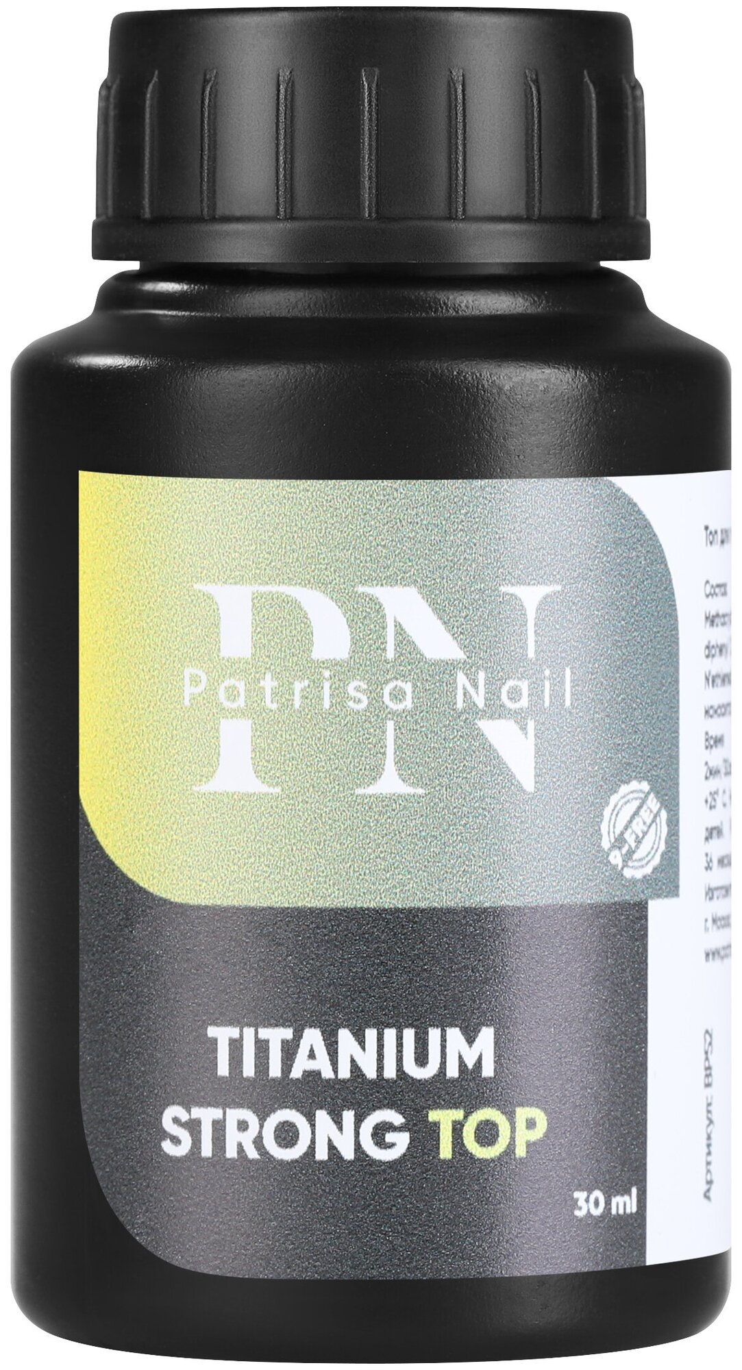 Укрепляющий топ для ногтей Patrisa Nail Titanium Strong Top, без липкого слоя, 30 мл