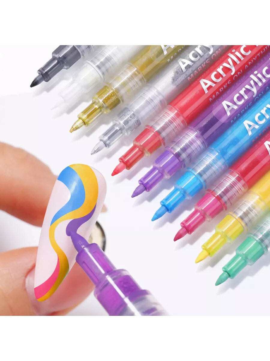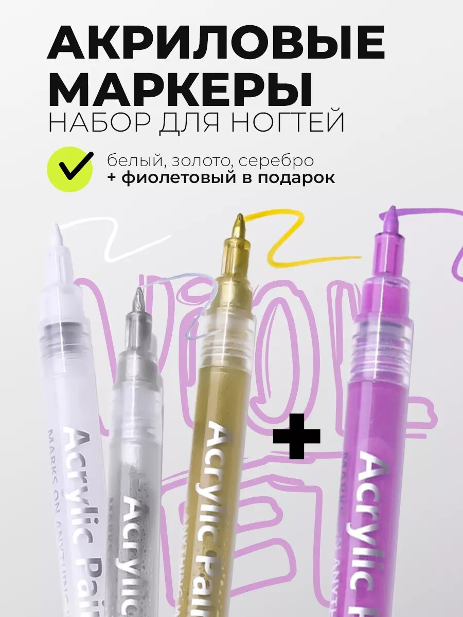 Купить Born Pretty, набор акриловые маркеры для ногтей (белый, золото, серебро) + подарок (фиолетовый)