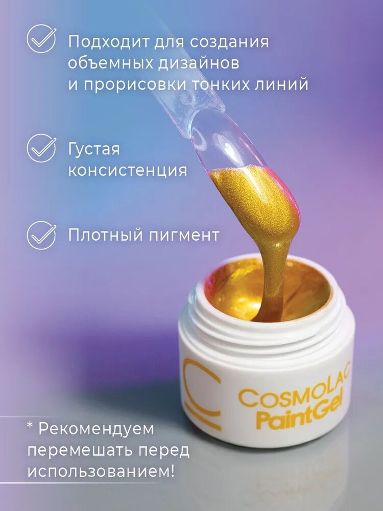 Купить Гель-краска CosmoLac Paint gel, без липкого слоя, N4 золотой оскар, 5 мл