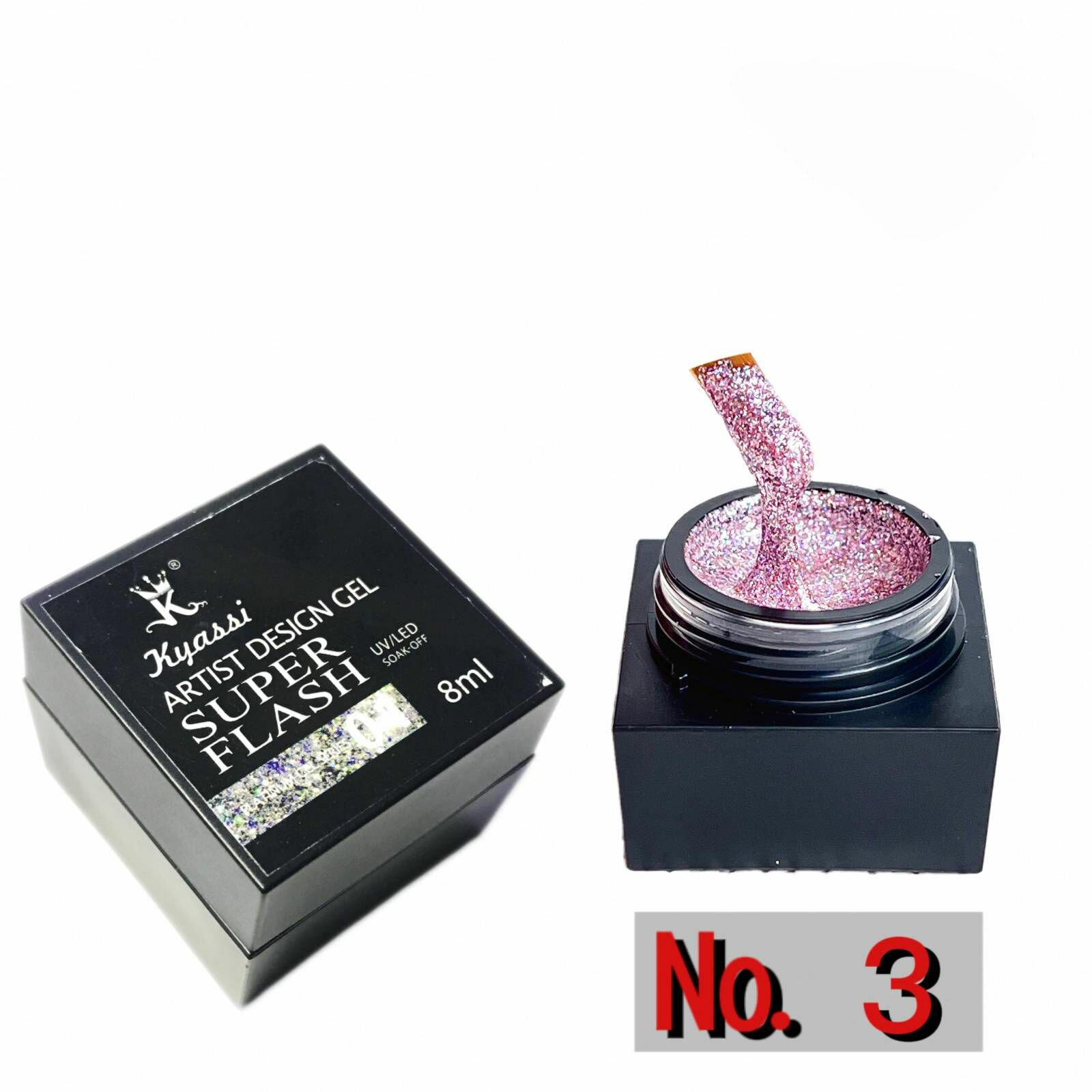 Купить Гель-краска для ногтей Kyassi Super flash №3 - Блеск для дизайна, цвет розовый, 8 мл, 1 шт