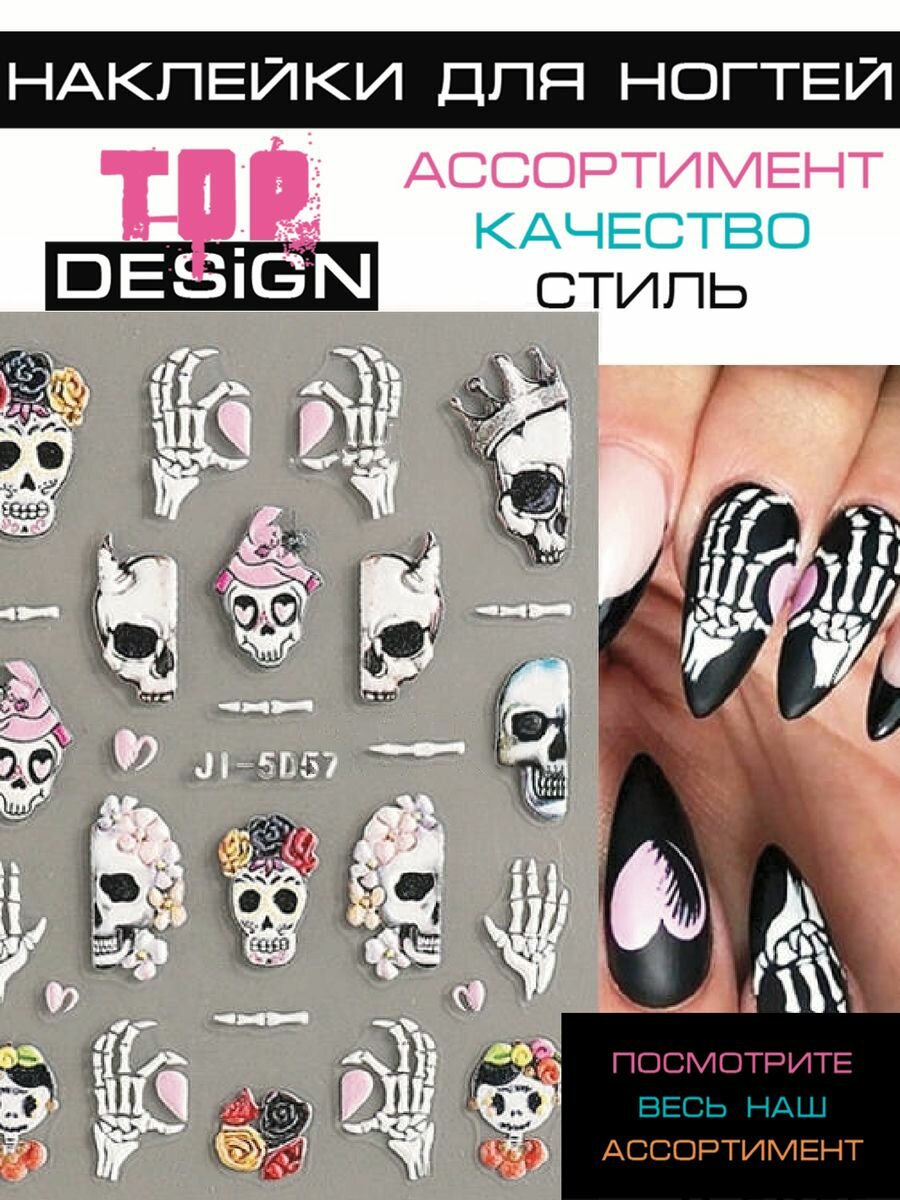Слайдеры наклейки для ногтей Череп интересное: