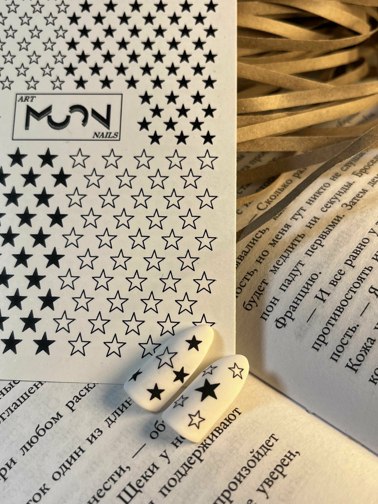 Слайдеры MOON "Звезды", черно-белые, ультратонкие, 13,5x10 см наклейки на водной основе