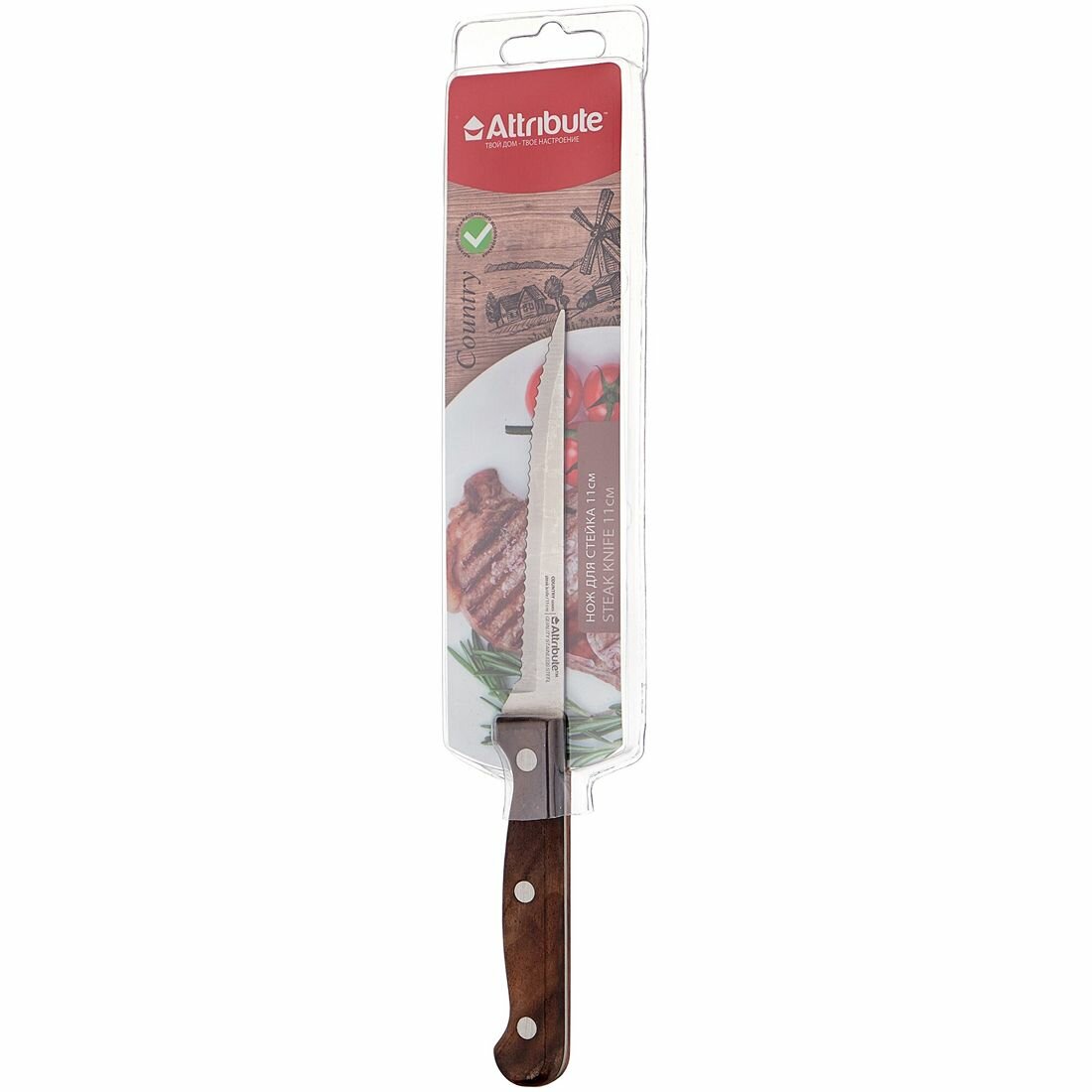 Нож для стейка Attribute Country Длина лезвия 11см нержавеющая сталь Ручка дерево Приборы для кухни