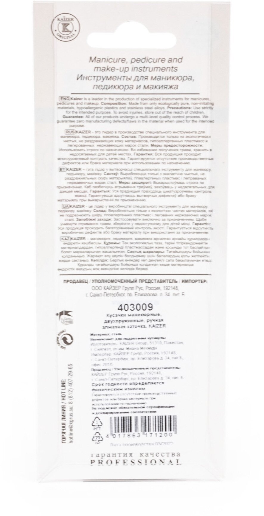 Кусачки маникюрные Kaizer двухпружинные, ручная алмазная заточка .