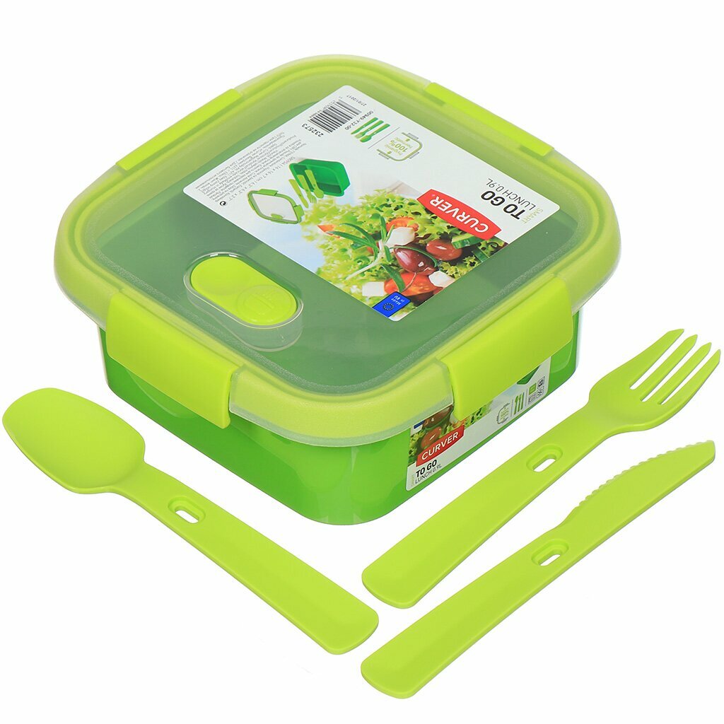 Контейнер пищевой с приборами Curver To Go 00949-Y32-00 0,9л зеленый