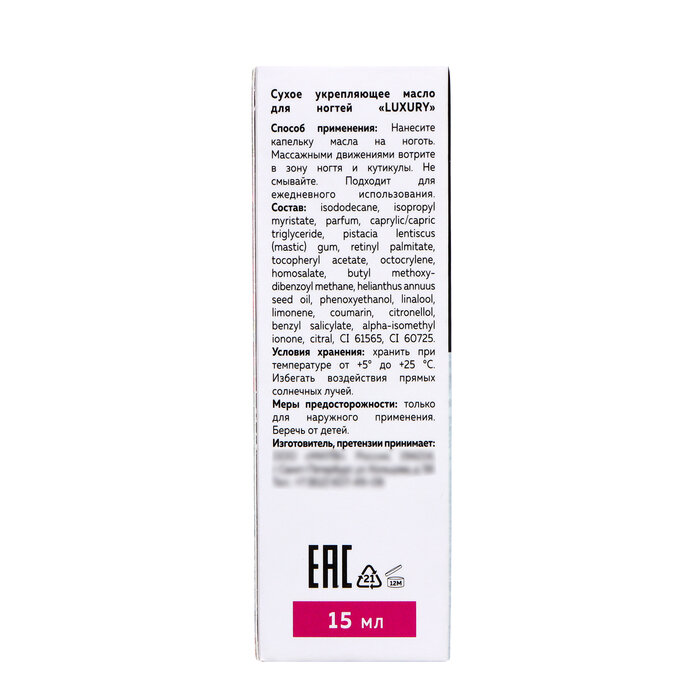 Сухое укрепляющее масло для ногтей MILV LUXURY, 15 мл 10469479 интересное: