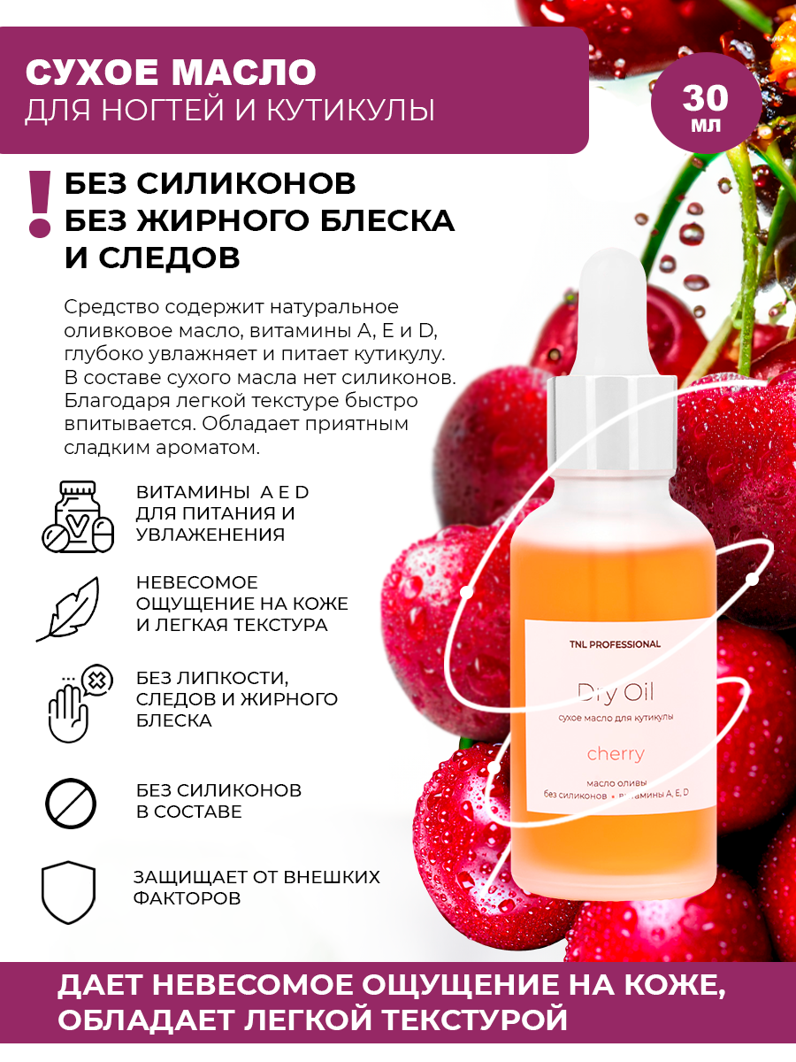TNL Professional, Сухое масло для кутикулы Dry Oil - вишня, 30 мл интересное: