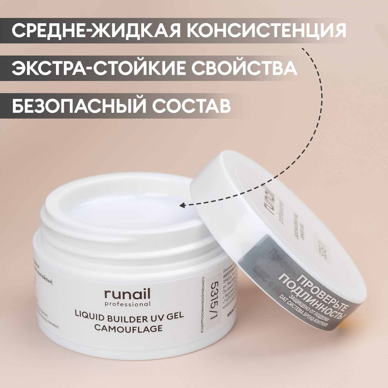 RUNAIL УФ-гель камуфлирующий, французский бежевый 15 г