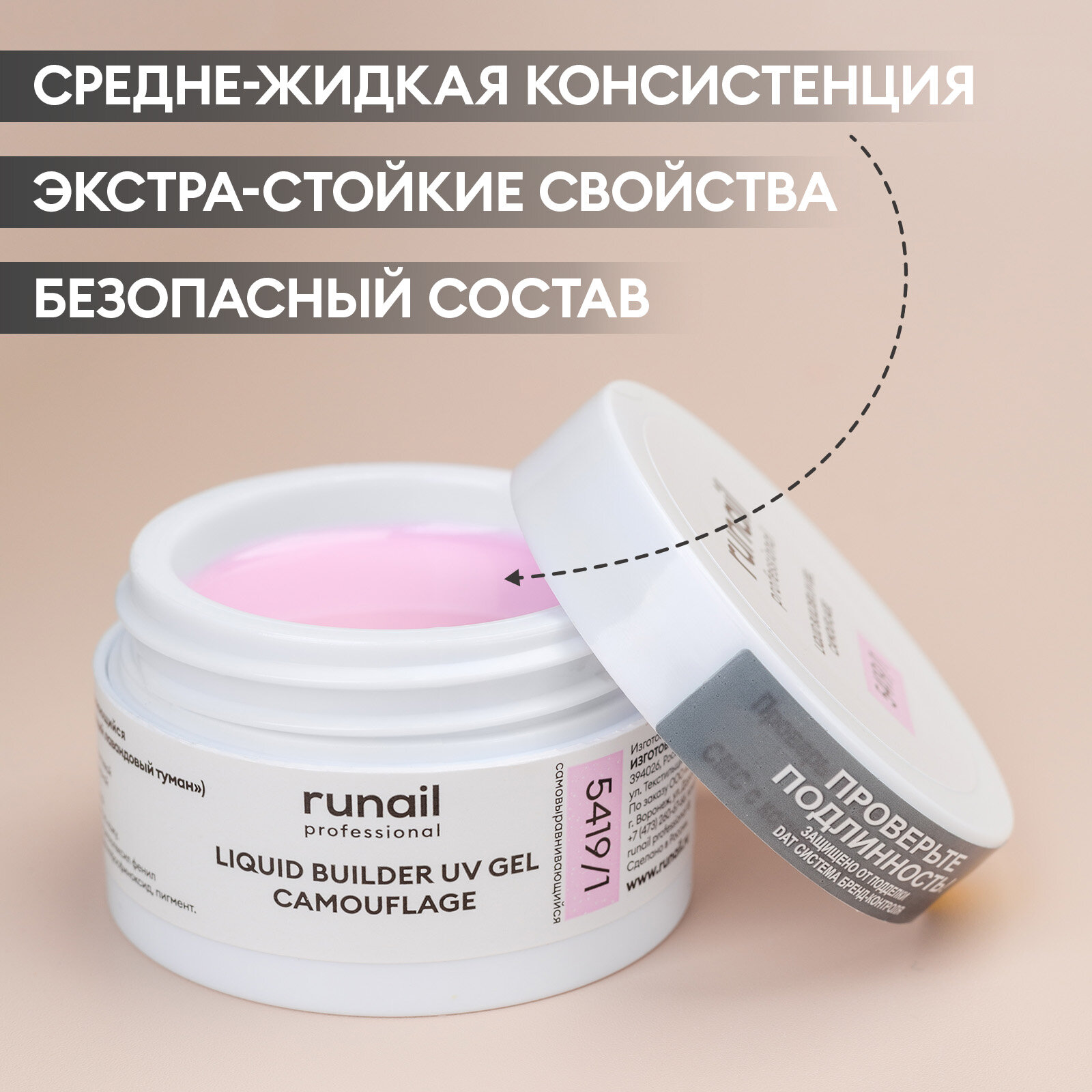 RUNAIL, Камуфлирующий УФ-гель, лавандовый рассвет, 15 г